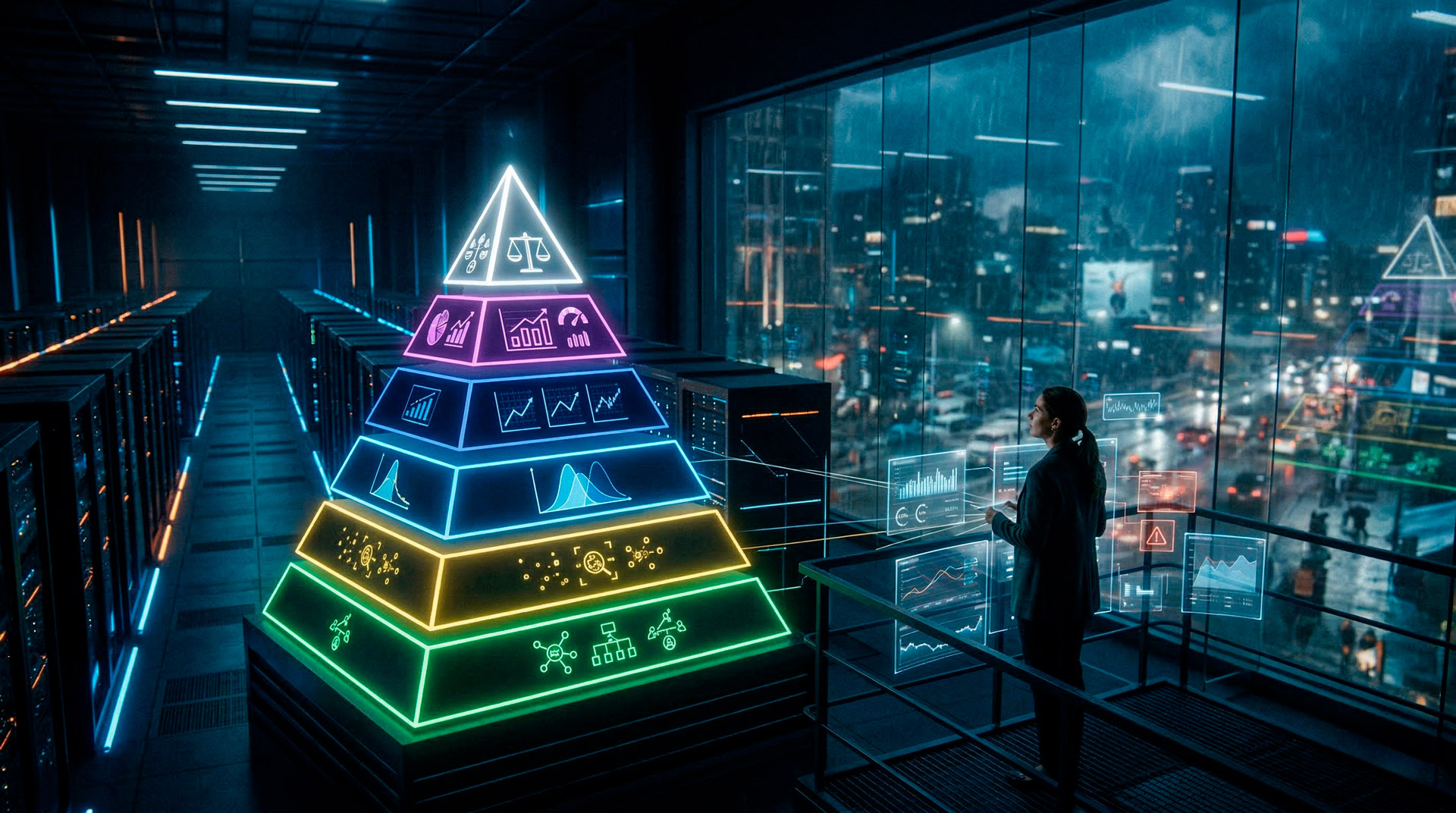 A tentação — especialmente para equipes de ciência de dados — é começar pelo meio da pirâmide, focando nos números de acurácia e nas métricas estatísticas. Mas essa é uma armadilha clássica. Um modelo com excelente acurácia estatística pode estar destruindo valor de negócio se as previsões chegam com latência de dois segundos em vez de cinquenta milissegundos. E um modelo com métricas operacionais impecáveis pode estar sistematicamente discriminando grupos de usuários de forma invisível.